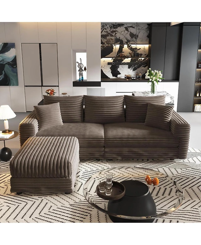 Streamdale Furniture Corduroy 83.86" Modern Compressed 3-Seater Sofa for Living Room