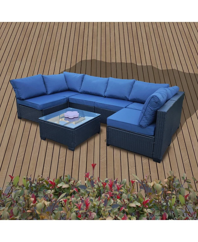 Boyel Living All-Iron Detachable Wicker Corner Sofa Set - 7 Pieces