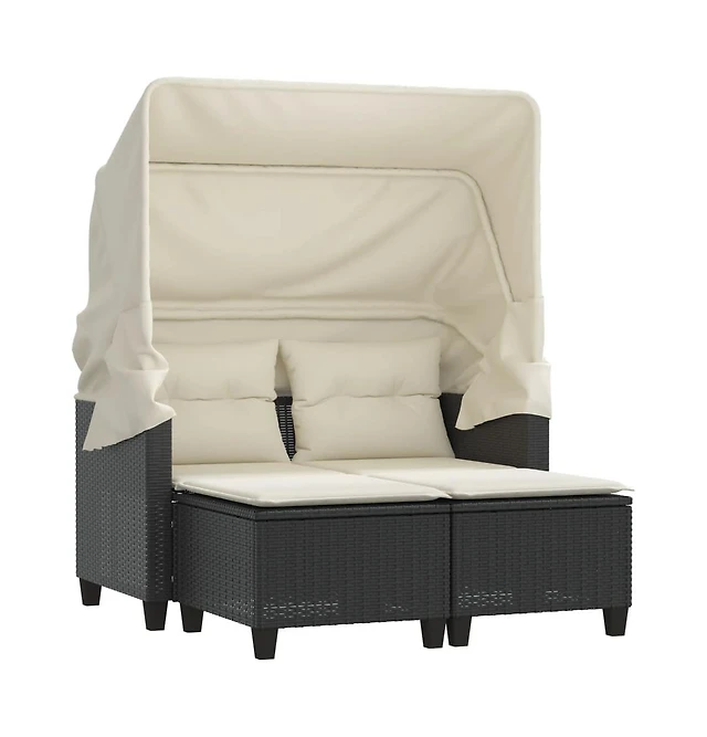 vidaXL Patio Sofa Grey and Navy Blue Pe rattan and powder-coated steel