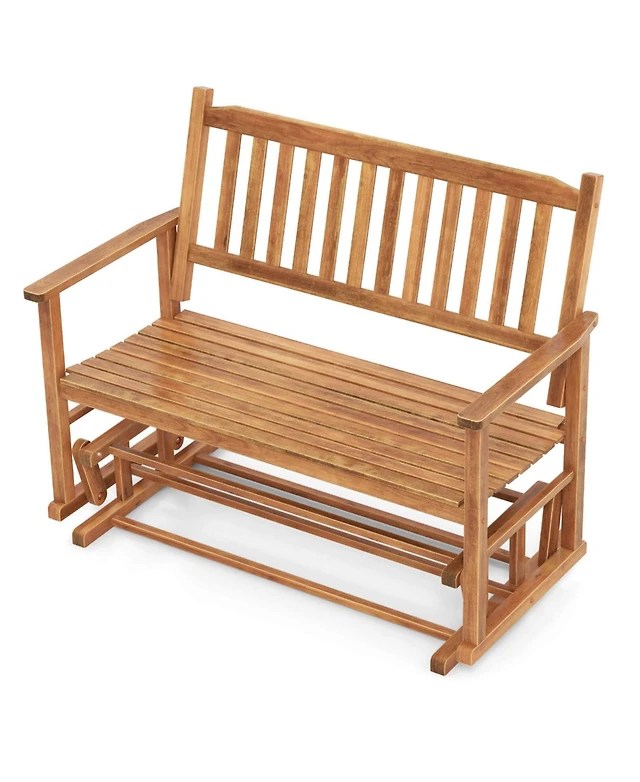 Patio Glider Loveseat Chair Swing Rocking Bench with Slatted Seat & Curved Backrest