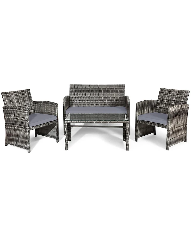 Sugift 4 Pieces Patio Rattan Furniture Set with Glass Table and Loveseat