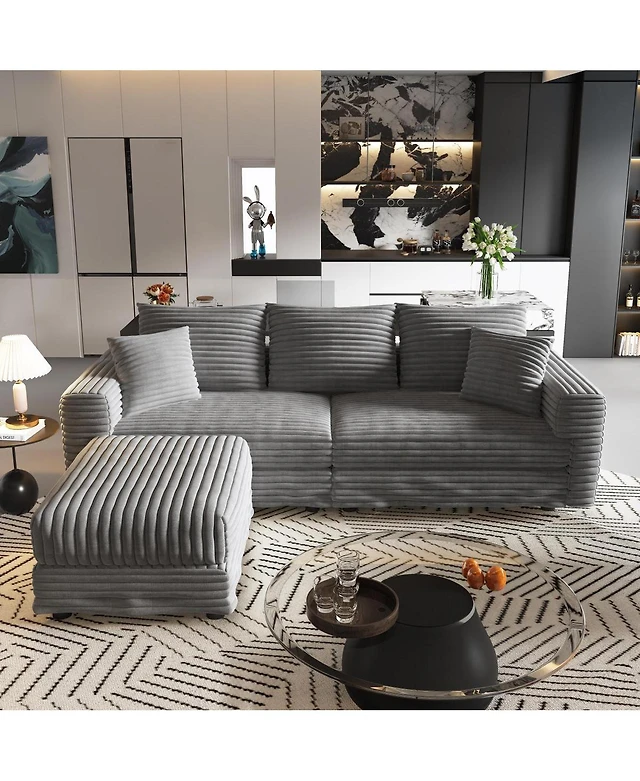 Streamdale Furniture Modern Fabric Living Room Sofa with 4 Pillows Upholstered Large Deep Seating Loveseat, Grey Corduroy