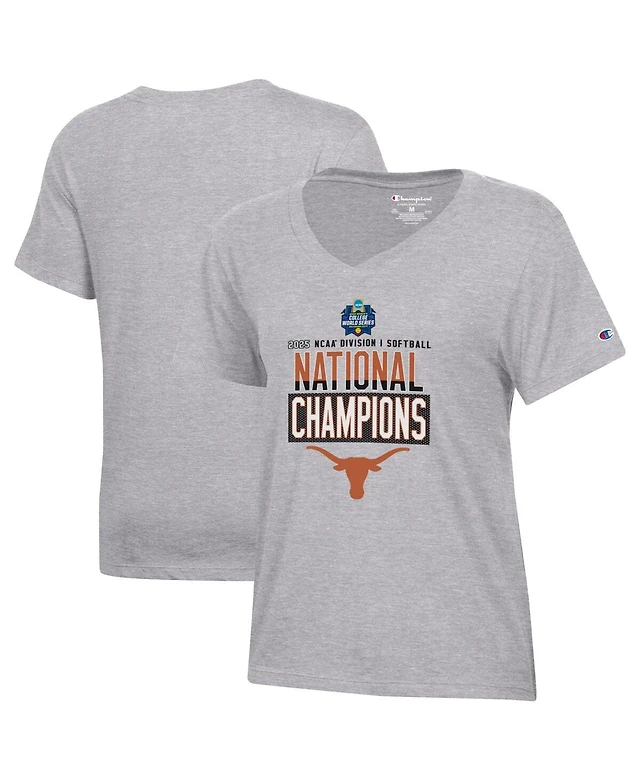 Champion Women's Gray Texas Longhorns 2025 Ncaa Softball Women's College World Series Champions Locker Room V-Neck T-Shirt