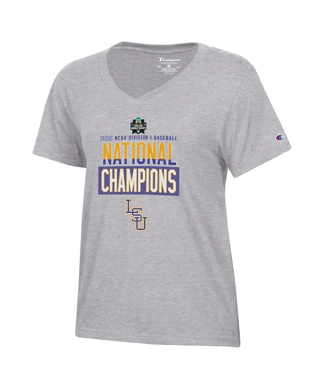 Champion Women's Gray Lsu Tigers 2025 Ncaa Baseball Men's College World Series Champions V-Neck T-Shirt