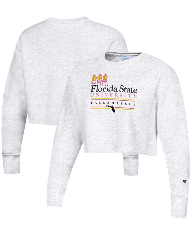 Women's Heathered Gray Florida State Seminoles Beach Club Reverse Weave Cropped Pullover Sweatshirt