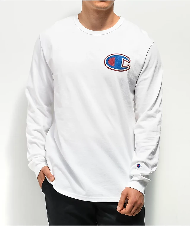 Champion Men's White Michigan Wolverines Arch Over Logo 2-Hit Long Sleeve T-Shirt