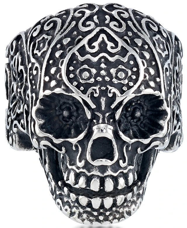 Andrew Charles by Andy Hilfiger Men's Ornamental Skull Ring Oxidized Stainless Steel