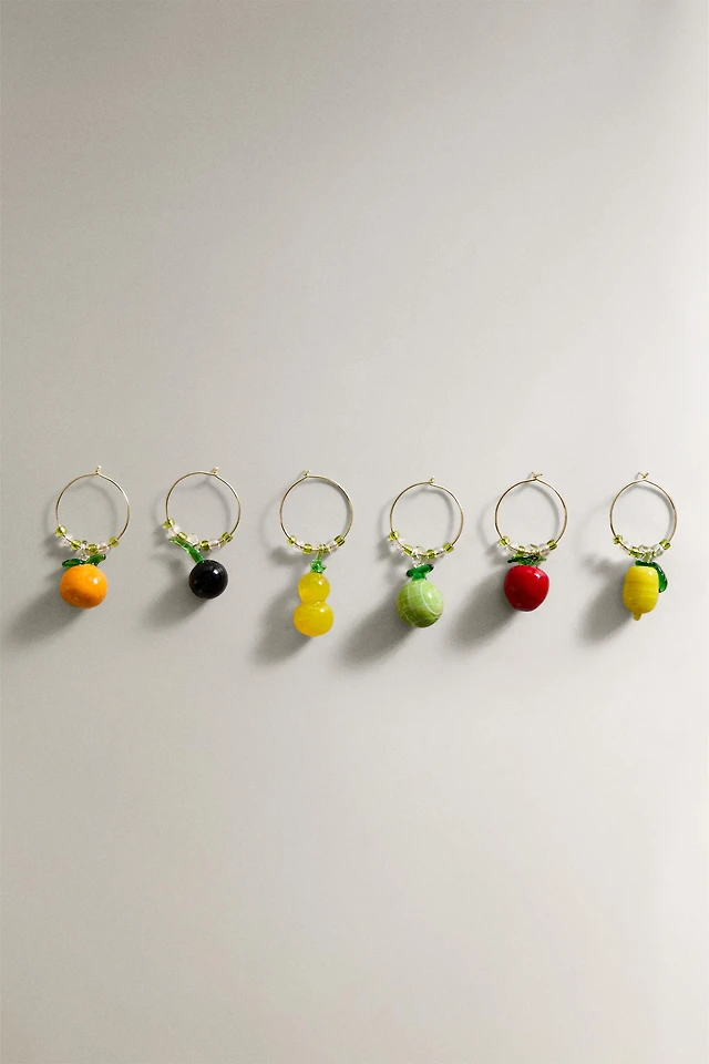 PACK OF GLASS FRUIT WINE CHARMS (PACK OF 6)