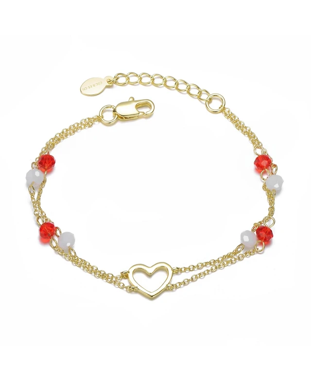 GiGiGirl 14K Gold-Plated with Red & White Beads Double Chain Open Heart Bracelet