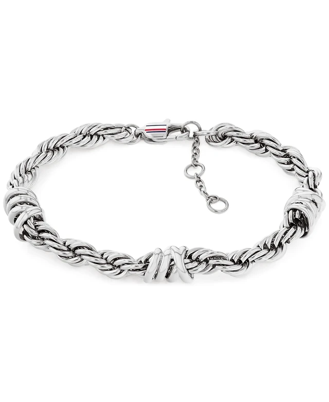 Macy's Silver-Plated Beaded Heart Charm Stretch Bracelet