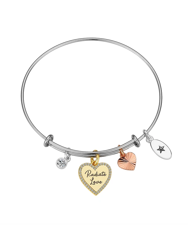Unwritten Family Tree Cubic Zirconia Adjustable Bangle Bracelet In Stainless Steel and Gold Flash Plated Charms