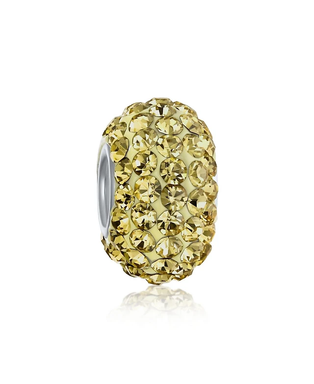 Bling Jewelry Solid Stripe Pave Crystal Bead Charm Bracelet Sterling Silver Core