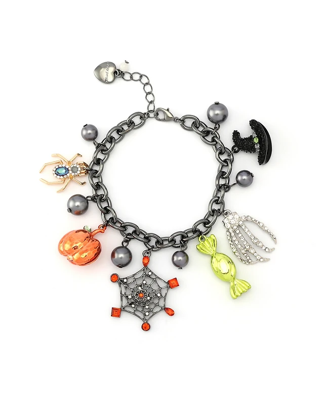Betsey Johnson Faux Stone Straight Back to School Cultivated Pearl Charm Bracelet