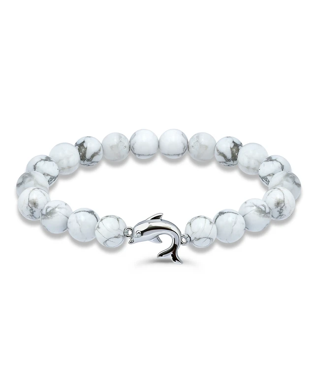 Macy's Aventurine Beads and Starfish Charm Silver Plated Stretch Bracelet