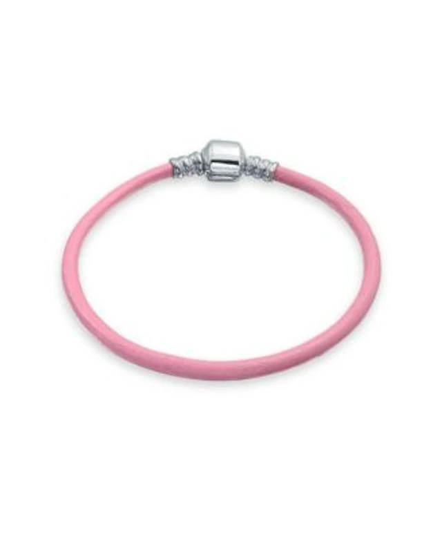Bling Jewelry Support Breast Cancer Survivor Pink Ribbon Bead Charm Leather Bracelet .925 Silver