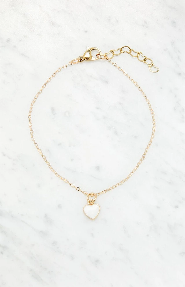 Guess Gold-Tone Rainbow Pave Logo Heart Link Bracelet