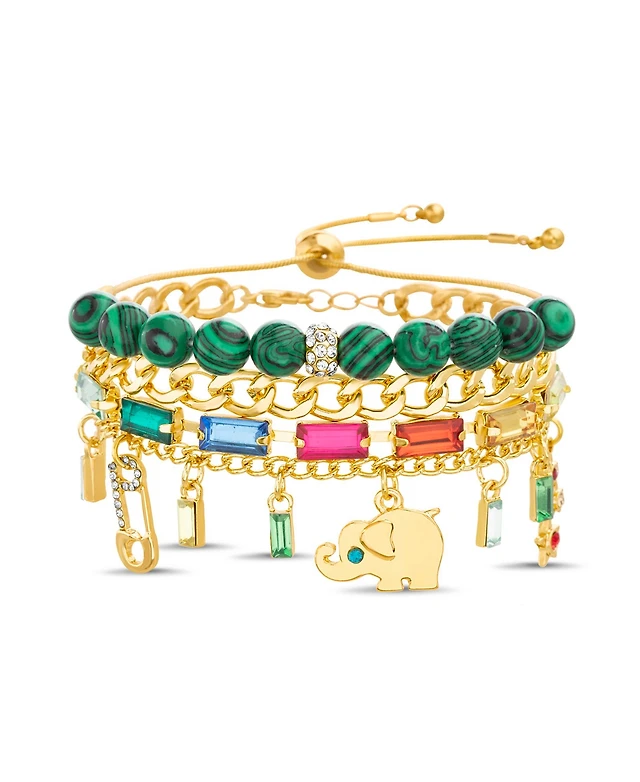 Shyanne Women's 3-Piece Silver Wide Cuff Chain & Evil Eye Charm Bracelet Set