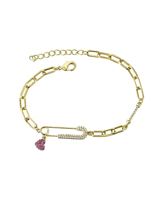 14K Gold Plated with Pink Cubic Zirconia Adjustable Bracelet