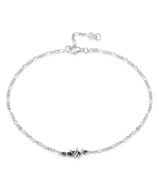 Bling Jewelry Nautical Ocean Sideways Boat Anchor Charm Anklet Ankle Bracelet .925 Sterling Silver Adjustable 9 To 10 Inch With Extender