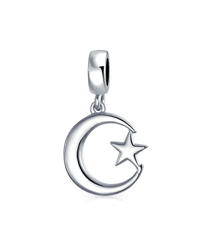 Bling Jewelry Starry Night Crescent Moon & Star Dangle Charm Bead Sterling Silver Bracelet