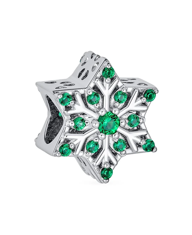 Bling Jewelry Frozen Winter Holiday Party Aqua Ice Blue Cz Christmas Snowflake Charm Bead .925 Sterling Silver For European Bracelet
