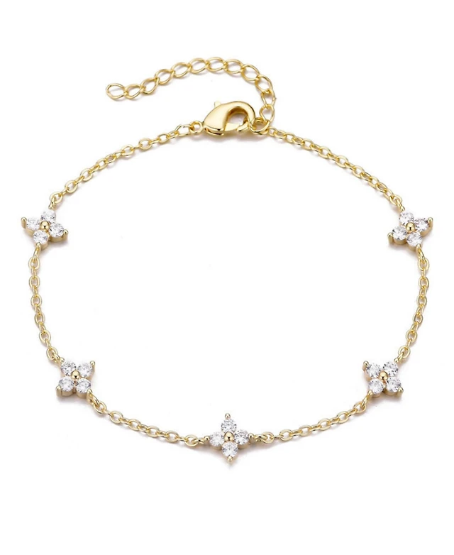 Sterling Silver with White Cubic Zirconia Flower Design Bracelet