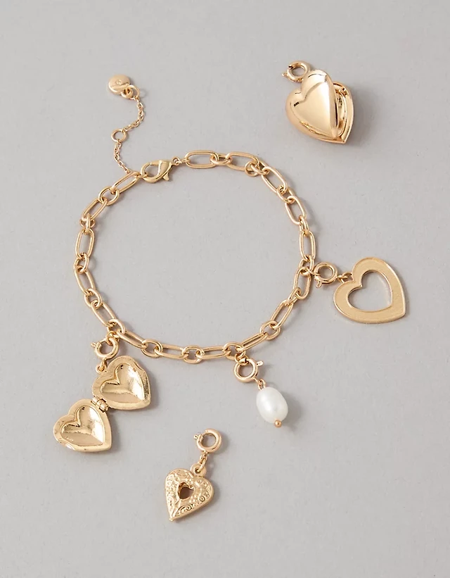 Mother Daughter Splittable Heart Charm and Bracelet Set