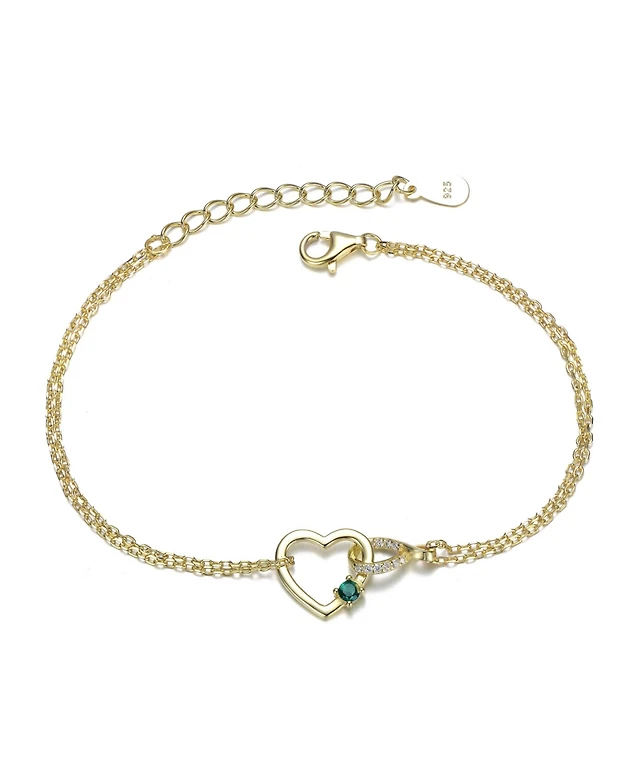 14K Gold Plated Cubic Zirconia Heart Station Charm Bracelet