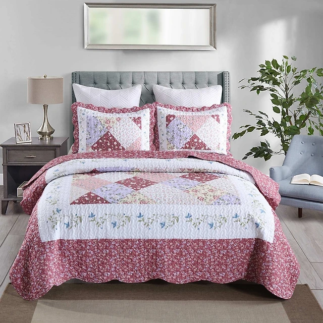 MarCielo 3 Pcs Printed Floral Lightweight Quilt Bedspread Set King
