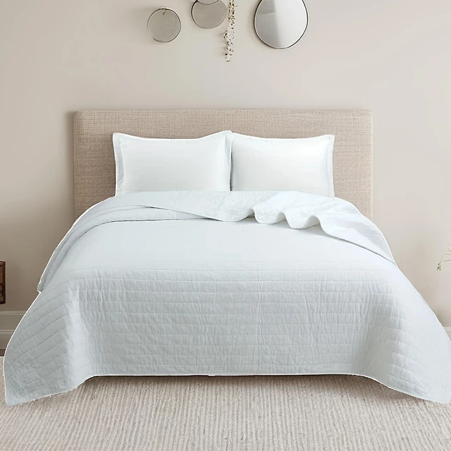MarCielo 3-Piece 100% White Cotton Oversized Bedspread Quilt Set Sakura