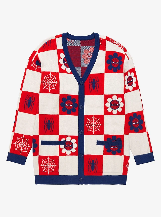 Marvel Spider-Man Floral Checkered Women's Cardigan - BoxLunch Exclusive
