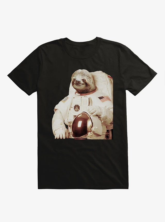 Astronaut Sloth Black T-Shirt