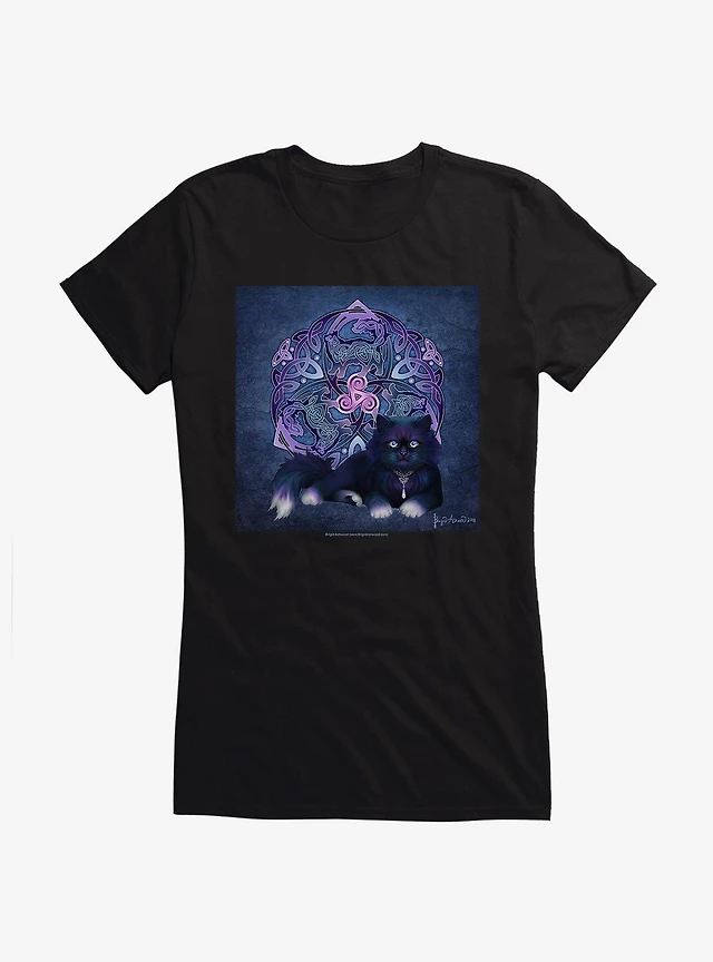Celtic Black Fluffy Cat Girls T-Shirt by Brigid Ashwood
