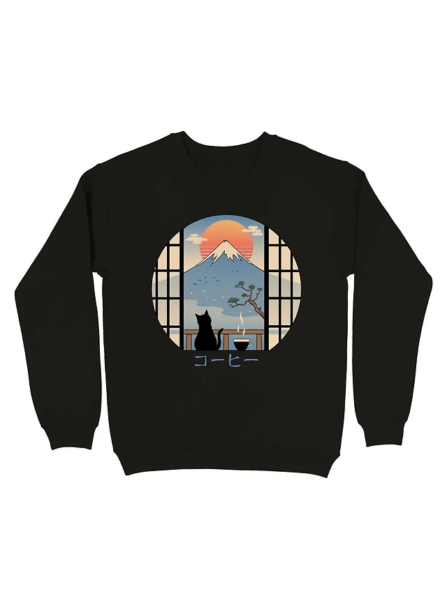 Coffee Cat In Mt. Fuji Sweatshirt