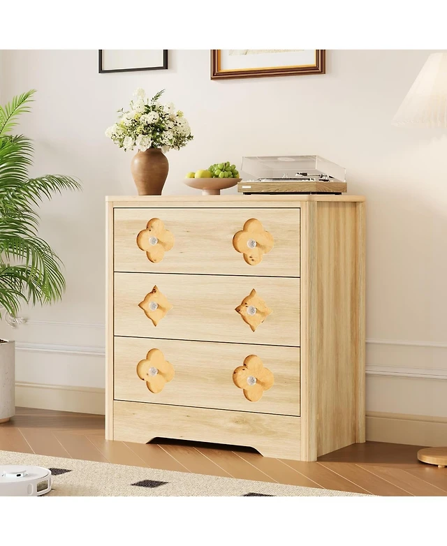 Dresser for Bedroom with 3 Drawers, Rattan Dresser with Spacious Storage, Modern Wooden Closet Dressers Chest of Drawers, Wood Nightstand for Bedroom,
