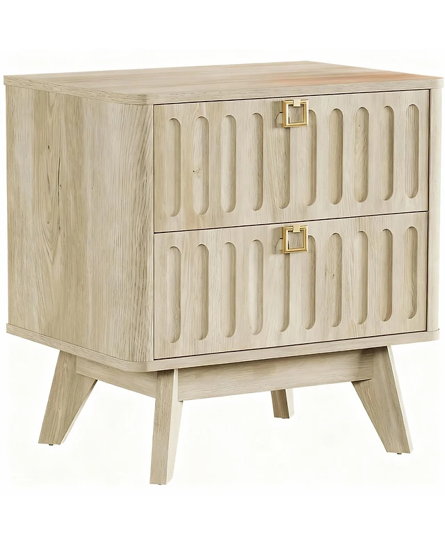Gaomon Fluted Nightstand With Charging Station Bedside Table With 3 Drawers Storage Space.