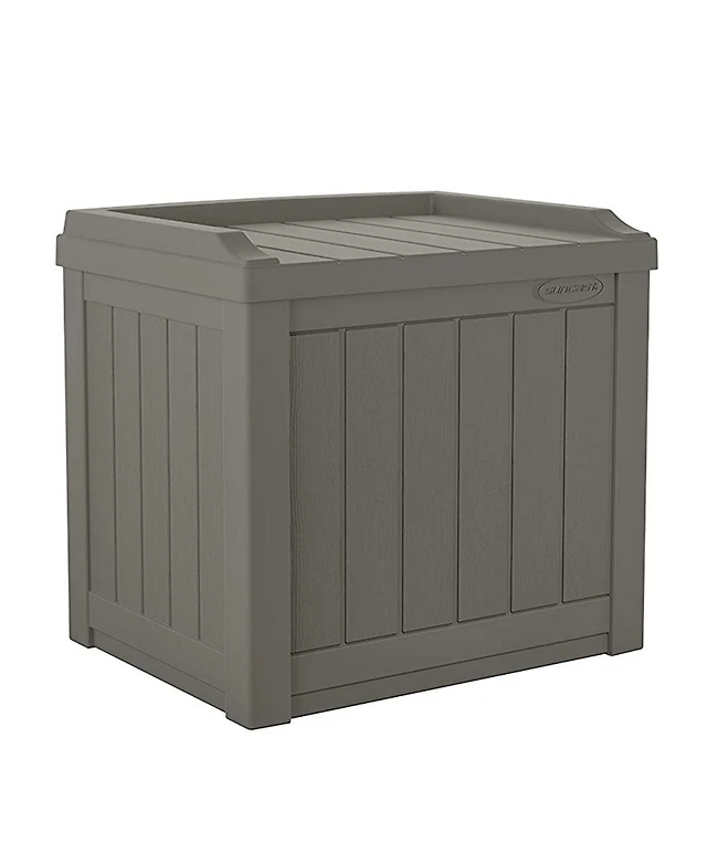 Suncast 22 Gallon Outdoor Patio Small Deck Chest Box with Storage Seat, Stone