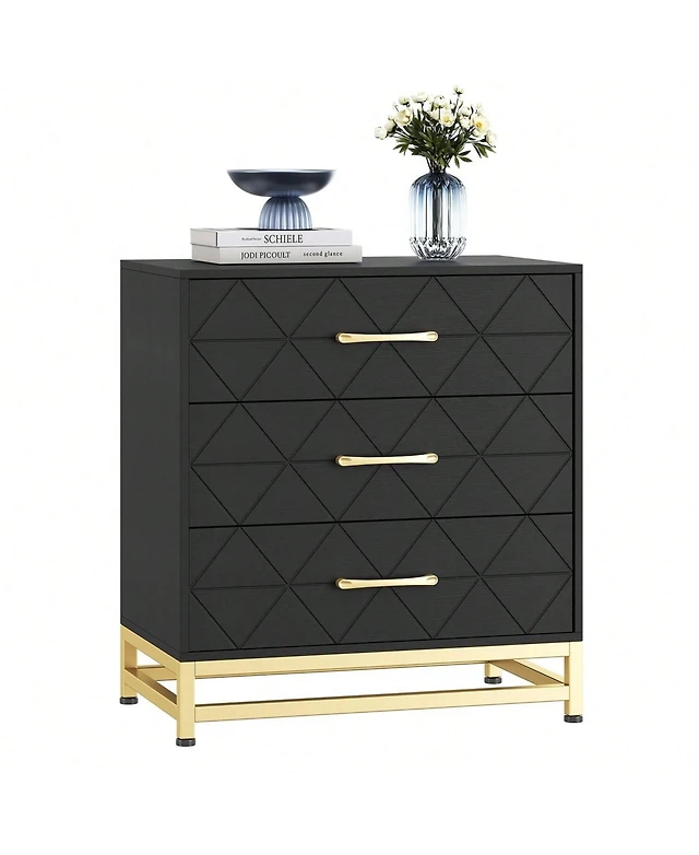 gaomon 3 Drawer Dresser, Wood Chest Drawers With Storage For Closet, Bedroom, Drawers Dresser Modern Bedside Nightstand With Gold Handles