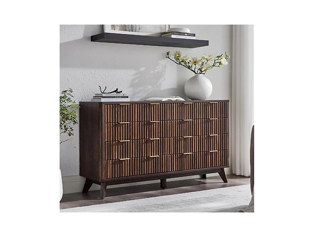 gaomon 7 Drawer Fluted Wide Dresser, Wooden Storage Organizer for Living Room, Entryway