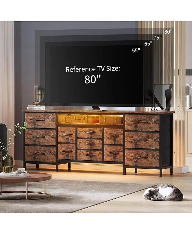 gaomon 70 Inch Long Dresser with 13 Drawers, Tv Stand for 65-80 Charging Station Led Lights, Fabric Storage Organizer Bedroom