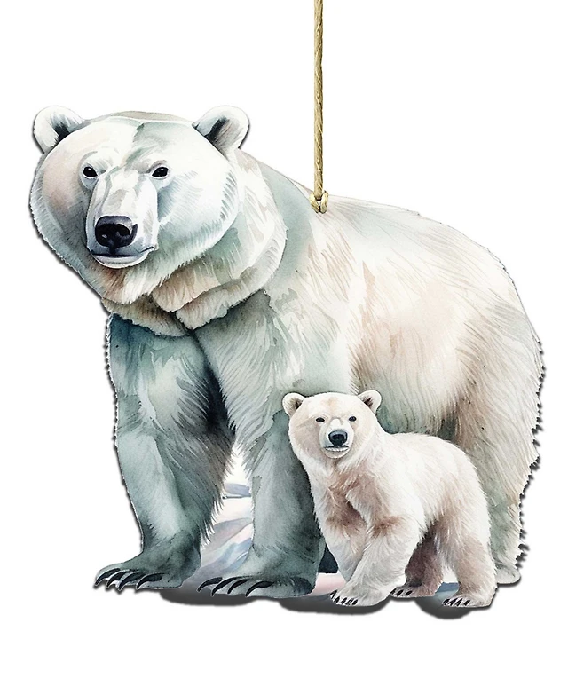 Designocracy Polar Bear and Cub Christmas Wood Ornament