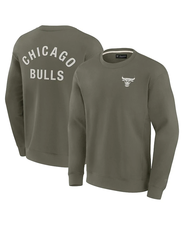 Fanatics Signature Men's and Women's Olive Chicago Bulls Super Soft Pullover Crew Sweatshirt