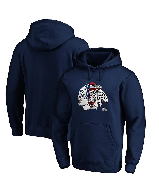 Men's Fanatics Navy Chicago Blackhawks Banner Wave Logo Pullover Hoodie