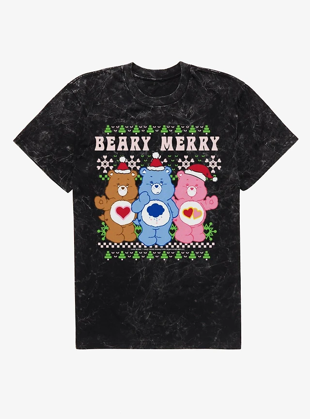 Care Bears Ugly Sweater Pattern Beary Merry Christmas Mineral Wash T-Shirt