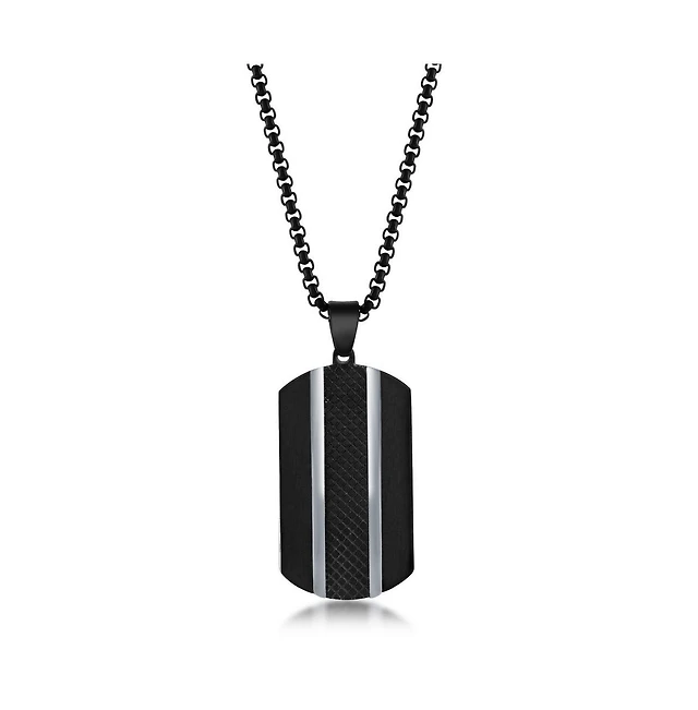Black Spinel Oxidized Dog Tag Pendant in Sterling Silver - 24"
