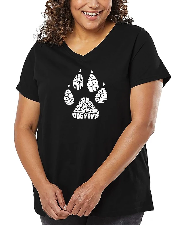 La Pop Art Plus Dog Mom Word V-Neck T-Shirt