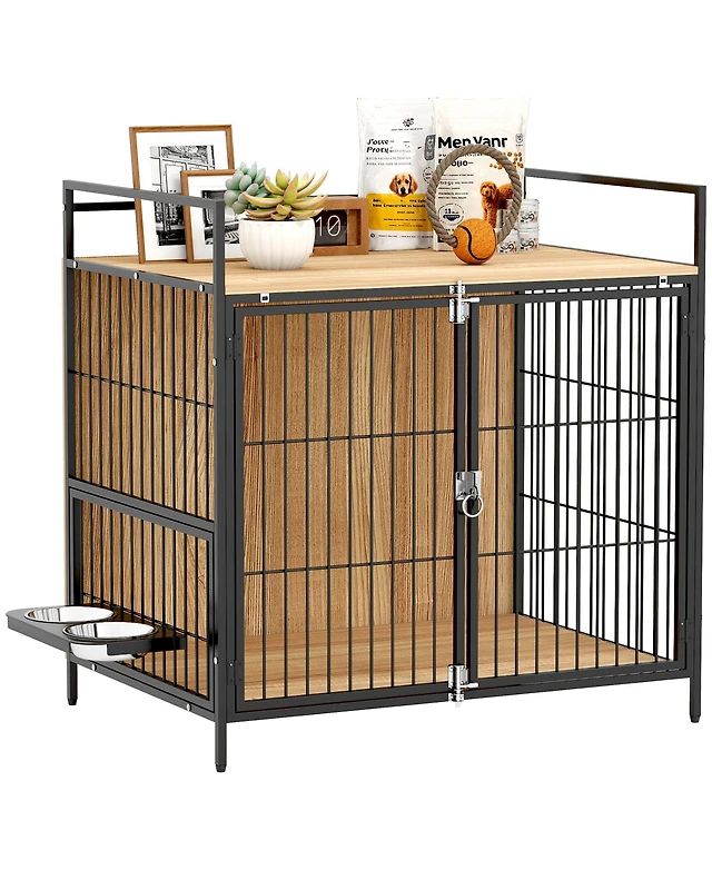 PawHut Dog Crate Furniture 30 in Dog Kennel Table with Rotatable Bowls,