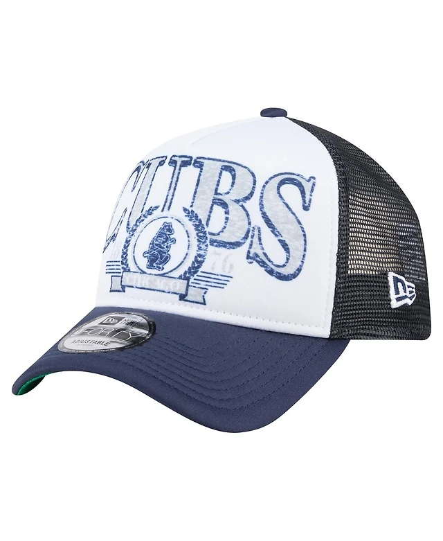 New Era Men's White/Navy Chicago Cubs Distressed 9FORTY A-Frame Adjustable Trucker Hat
