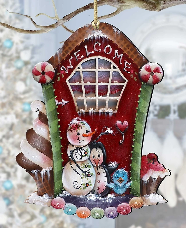G.DeBrekht Hand Painted Snowy Day Snowman Ornament Figurine with Scenic Painting