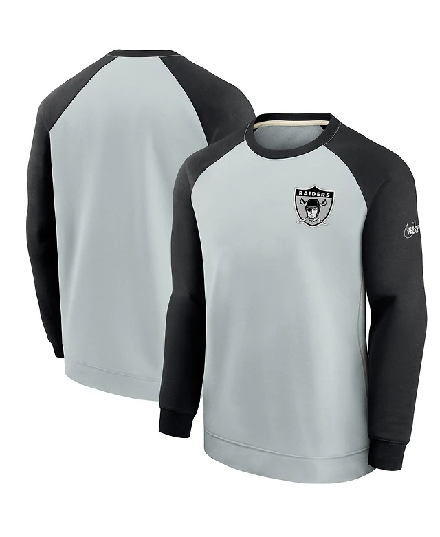 Men's Silver and Black Las Vegas Raiders Historic Raglan Crew Performance Sweater